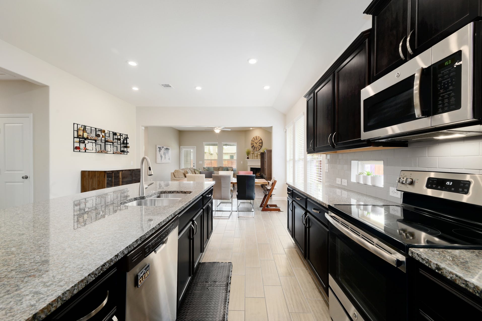 - Island kitchen with Granite countertops and Stainless Steel appliances
