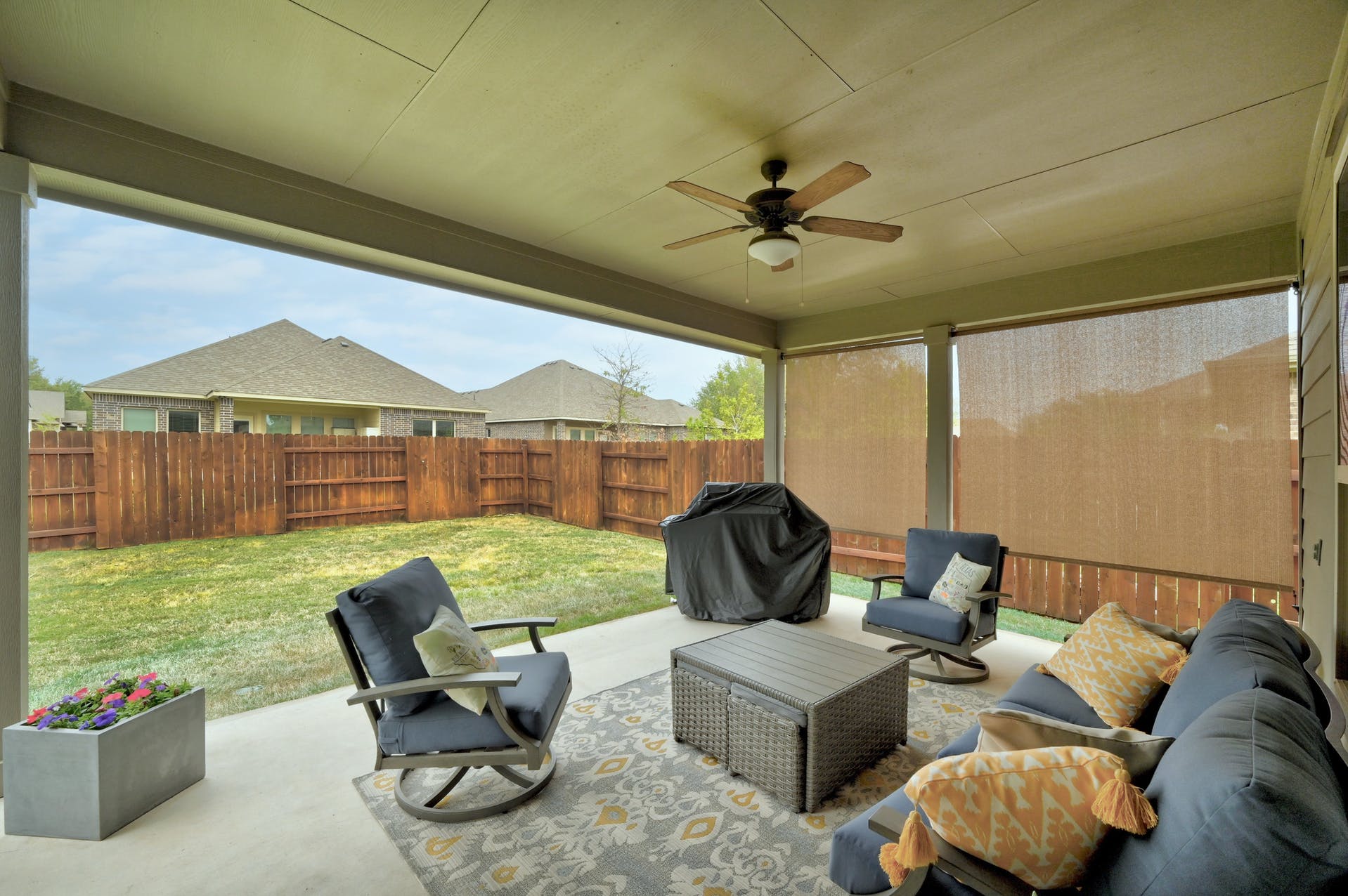 - Extended covered patio with custom Coolaroo solar outdoor shades which creates the ideal space to enjoy Texas outdoor living